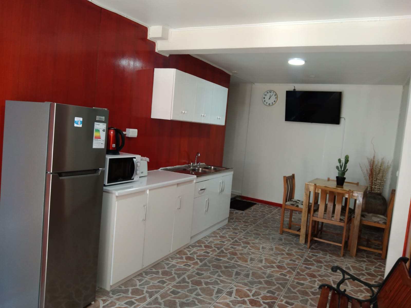 Depto 103: Cuenta con tres habitaciones (Capacidad 5 pasajeros). Su capacidad se asocia a un total de tres habitacione: dos habitaciones singles, y una habitación triple con 03 camas tipo single. El departamento cuenta con 02 baños, kitchenette, living comedor. Desayuno incluído