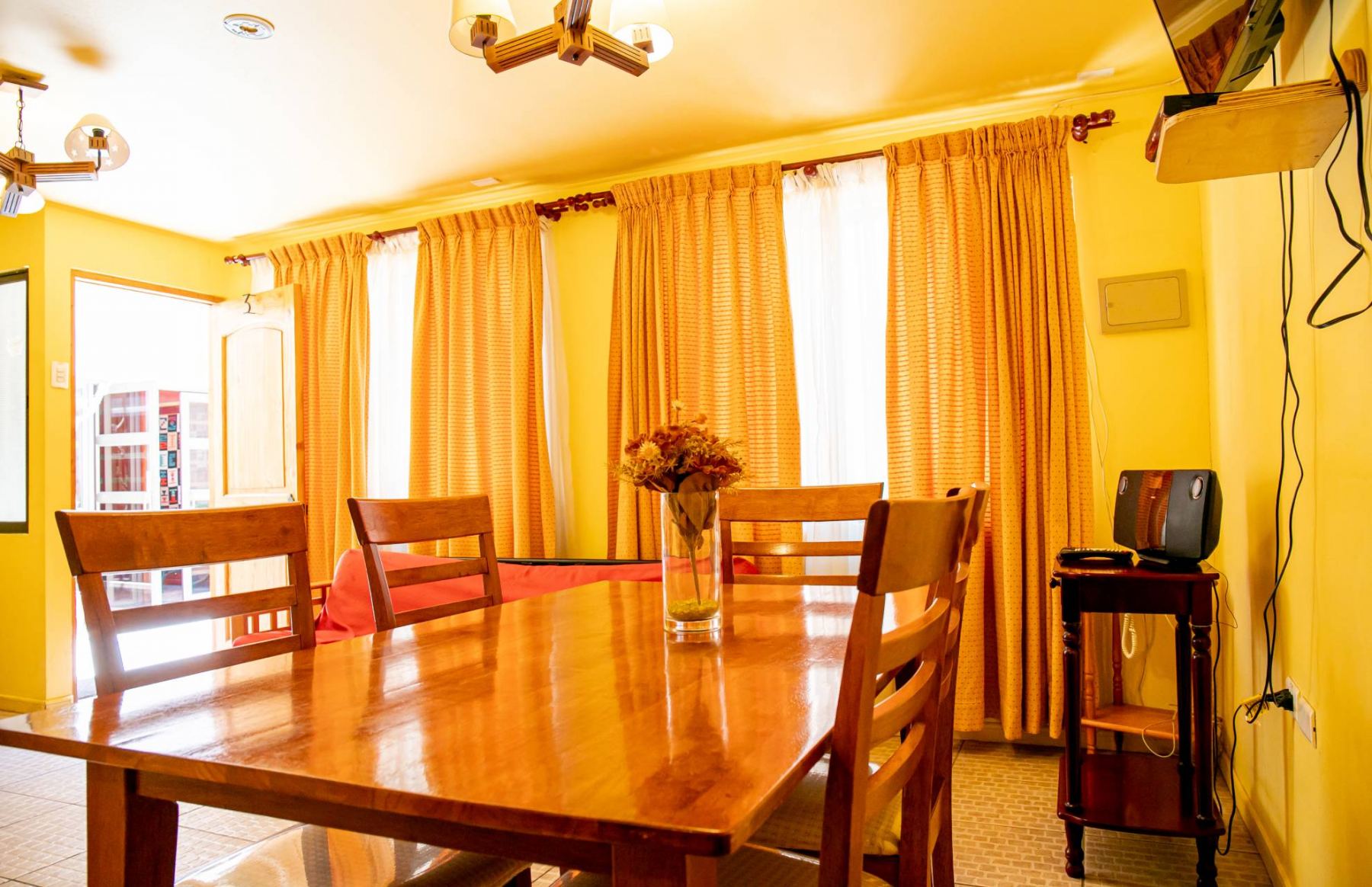 Depto 103: Cuenta con tres habitaciones (Capacidad 5 pasajeros). Su capacidad se asocia a un total de tres habitacione: dos habitaciones singles, y una habitación triple con 03 camas tipo single. El departamento cuenta con 02 baños, kitchenette, living comedor. Desayuno incluído